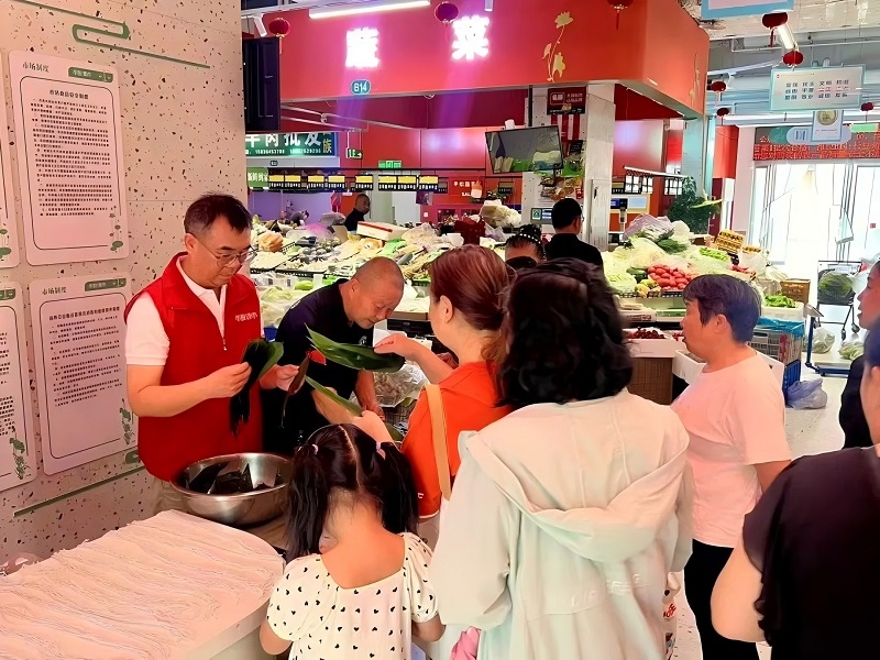 在市投集市未來路農貿市場,市場組織的“粽情端午,樂購市投”活動,吸引了眾多周邊社區(qū)居民熱情參與,大家共聚一堂,包粽子、品美食、享優(yōu)惠,在歡聲笑語中感受傳統(tǒng)節(jié)日的魅力。