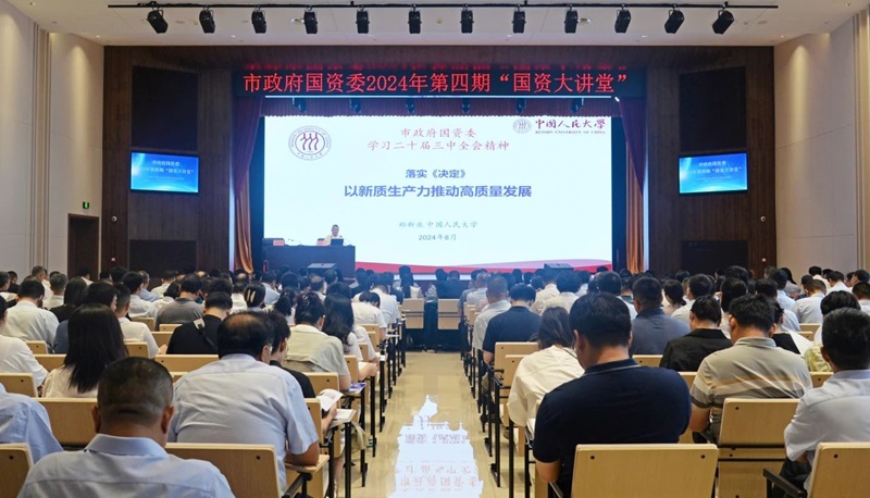 黨的二十屆三中全會(huì)擘畫了進(jìn)一步全面深化改革、推進(jìn)中國(guó)式現(xiàn)代化建設(shè)的新藍(lán)圖,黨中央、省委、市委要求切實(shí)抓好黨的二十屆三中全會(huì)精神的學(xué)習(xí)宣傳和貫徹落實(shí)。8月13日上午,市政府國(guó)資委在鄭州水務(wù)集團(tuán)有限公司智慧水務(wù)中心舉辦2024年第四期“國(guó)資大講堂”,邀請(qǐng)中國(guó)人民大學(xué)黨委常委、副校長(zhǎng)鄭新業(yè)教授圍繞《學(xué)習(xí)黨的二十屆三中全會(huì)精神 以新質(zhì)生產(chǎn)力推動(dòng)高質(zhì)量發(fā)展》作專題輔導(dǎo)。